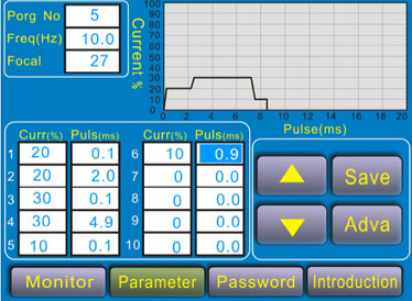 2、 本模具激光焊機系統(tǒng),提供了多達50組波形參數(shù)儲存。由于模具激光燒焊時,隨時會焊接不同材料,系統(tǒng)參數(shù)可隨時調取使用,無需重新編輯波形,方便快捷。